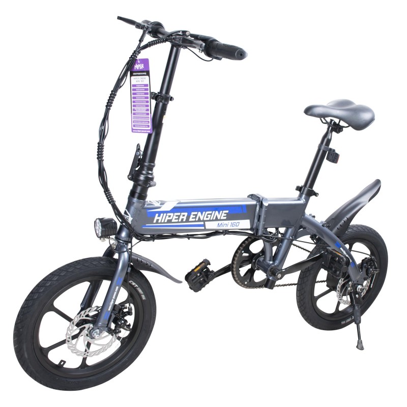 Электровелосипед HIPER ENGINE MINI 160 Space Gray – компактная модель городского электровелосипеда, которую удобно хранить и перевозить в транспорте, благодаря складной раме, выполненной из алюминиевого сплава. Легкий вес модели (всего 18,7 кг) позволяет справиться с ним даже подростку. Несмотря на свои миниатюрные габариты, велосипед выдерживает до 130 кг нагрузки.