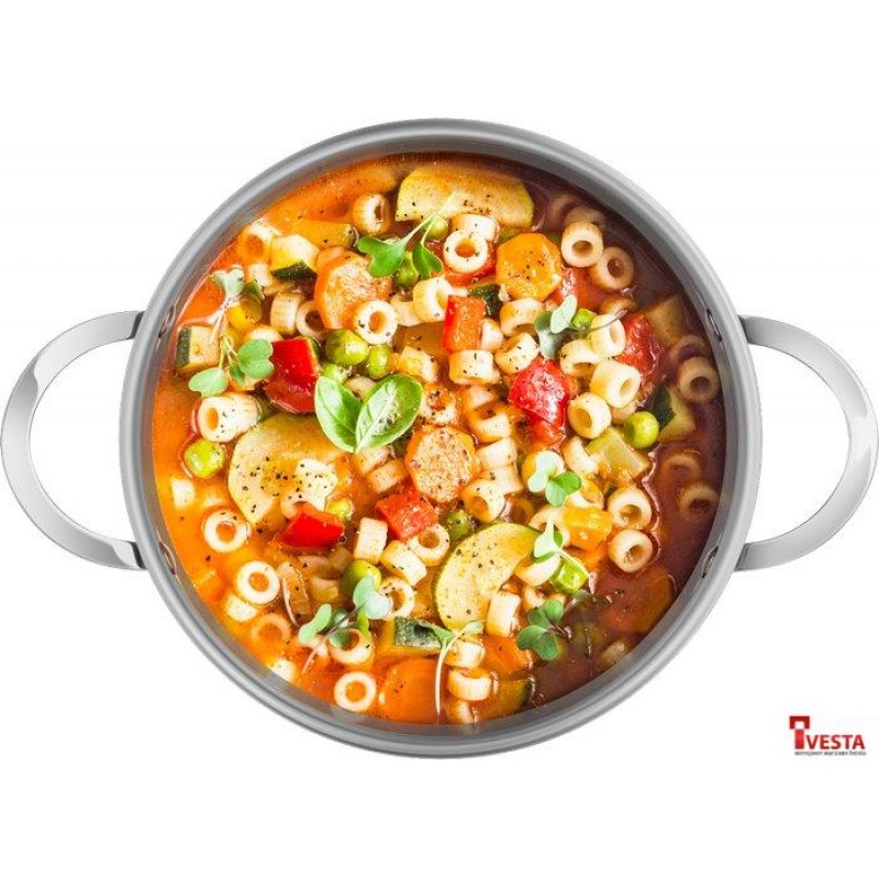 Посуда серии GERDA сделана из самой безопасной высококачественной нержавеющей стали марки 18/10 (INOX304), обладает коррозийной стойкостью, очень легка в уходе. Многослойное капсульное дно обеспечивает равномерный нагрев и распределение тепла благодаря алюминиевой прослойке, раскрывая вкусовые качества блюда и сохраняя все полезные свойства продуктов, а индукционный слой делает посуду универсальной для всех типов плит.