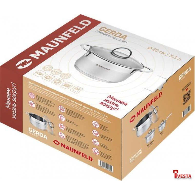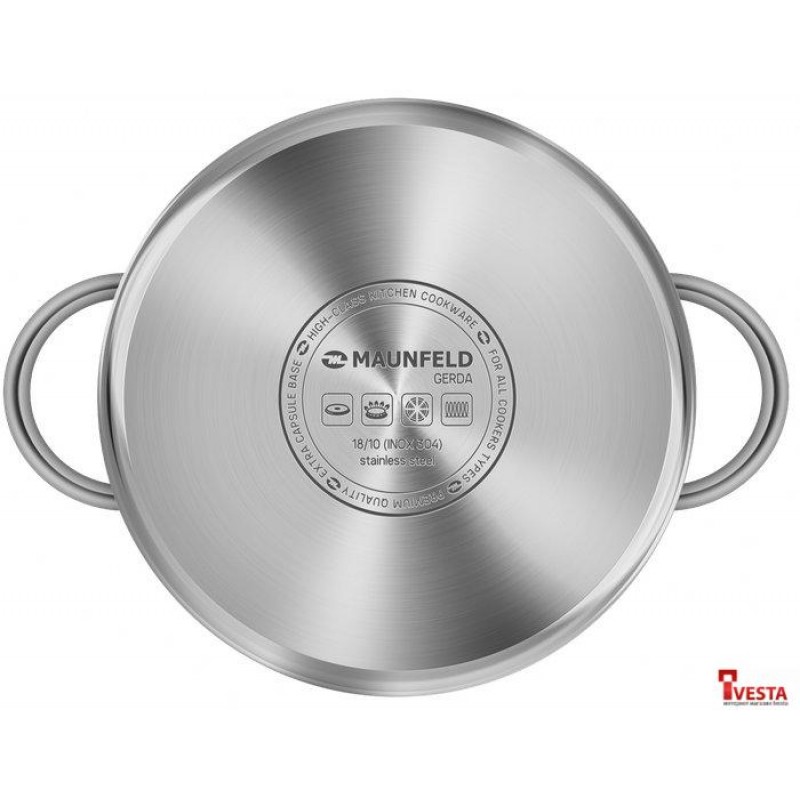 Посуда из нержавеющей стали неизменно пользуется любовью хозяек и поваров, которые знают толк в приготовлении вкусной еды. Продукты, приготовленные в посуде MAUNFELD серии GERDA из нержавеющей стали, надолго сохраняют питательные свойства, витамины, натуральный аромат и вкус приготовленных блюд.