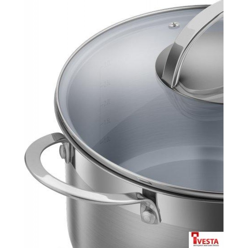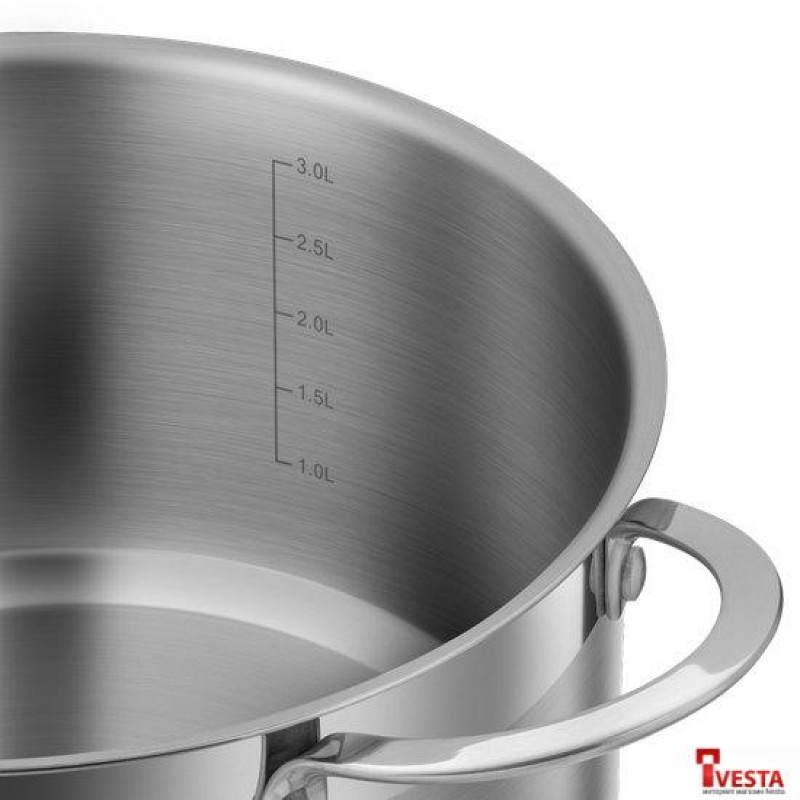 • Корпус из высококачественной нержавеющей стали 18/10 (INOX304) - устойчив к коррозийным повреждениям — кастрюли и ковши не ржавеют и не боятся влаги.