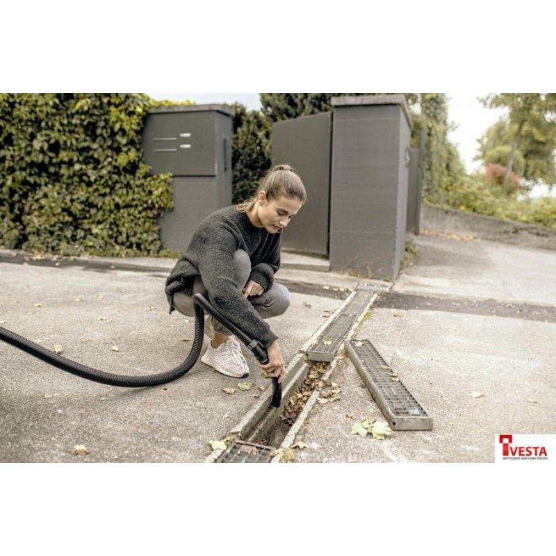 Этот энергоэффективный хозяйственный пылесос обладает сверхвысокой силой всасывания при невысокой потребляемой мощности (лишь 1000 Вт). Благодаря оптимально сочетающимся с ним всасывающему шлангу и насадке для пола он гарантирует высокое качество уборки при сборе мусора любых видов и размеров. При этом чередование операций влажной и сухой уборки не требует замены фильтра. Аппарат WD 4 S V-20/5/22 оснащен прочным 20-литровым мусоросборником из нержавеющей стали, 5-метровым кабелем, всасывающим шлангом длиной 2,2 м, плоским складчатым фильтром и фильтр-мешком из нетканого материала. Запатентованное решение позволяет легко и быстро вынимать фильтр, не вступая в контакт с грязью. Благодаря съемной конструкции рукоятки насадки могут присоединяться непосредственно к всасывающему шлангу, компактно закрепляемому на корпусе аппарата для хранения. На верхней панели пылесоса можно также уложить различные мелкие предметы. Для быстрого и удобного закрепления удлинительных трубок и насадки для пола предусмотрены держатели, сформованные в отбойнике пылесоса. Другими преимуществами являются замки Pull & Push, позволяющие легко отсоединять и присоединять мусоросборник, и эргономичная ручка для переноски.