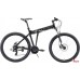 27.5", рама 20", городской, сталь Hi-ten, складная рама, вилка амортизационная с ходом 100 мм (алюминий), трансмиссия 21 скор. (3х7), переключатели: задний Shimano Tourney/передний Shimano Tourney, тормоз дисковый гидравлический, вес 16.8 кг, Сборка: Россия